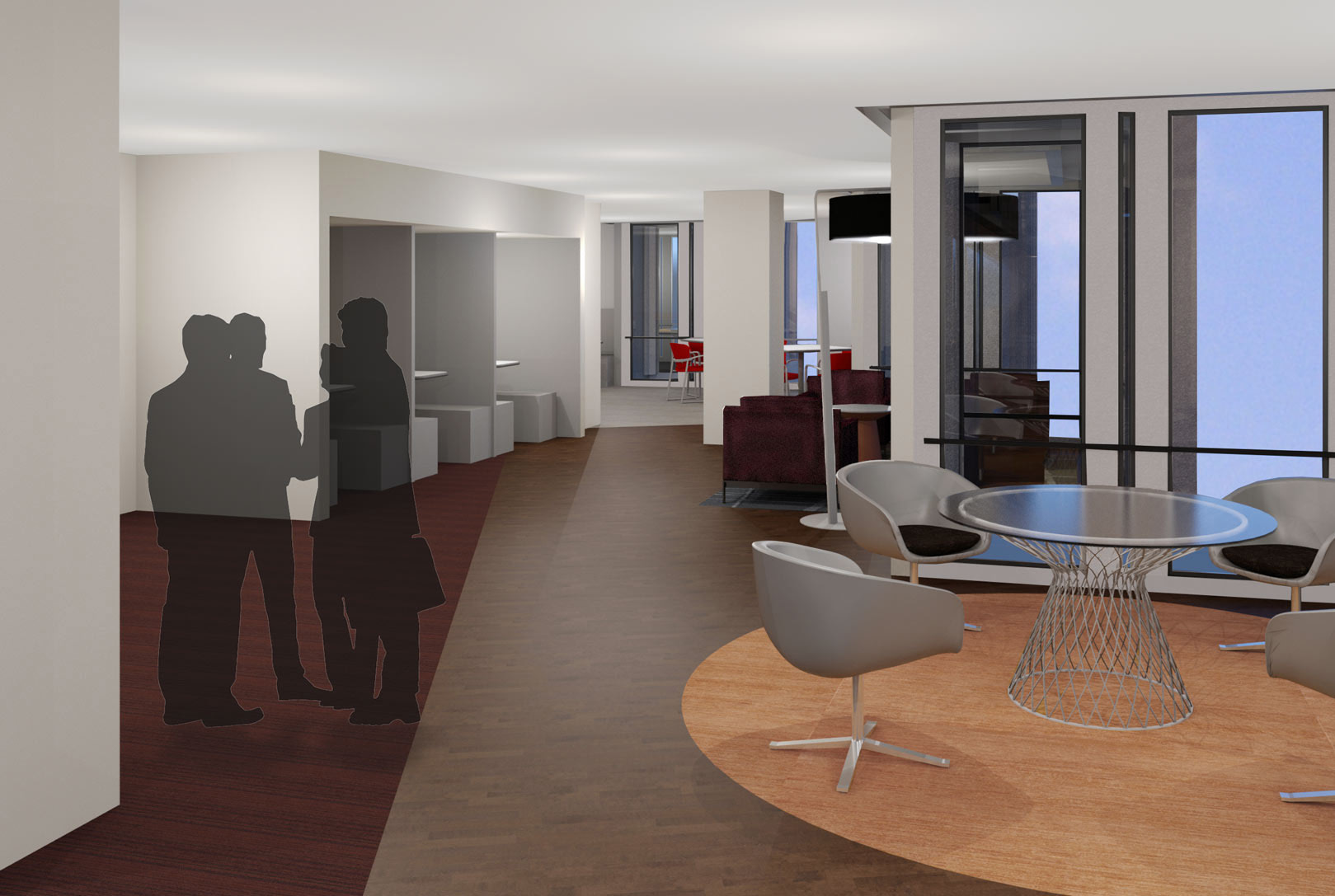 - Centralized reception and meeting space, as well as distributed, smaller meeting space.