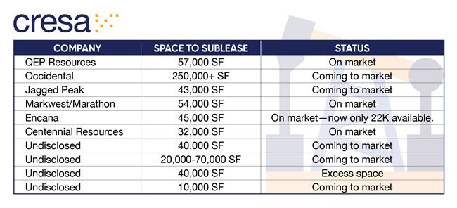 One thing is certain, we are on the doorstep of seeing a large spike in sublease availability that will continue through 2020. The majority of these oil and gas spaces will need improvements via capital expenses to be considered usable to most prospective subtenants. Considering the oil and gas industry preaching capital efficiency and minimal capital expenses in 2020, I predict we will see lower rental rates on these specific sublease spaces to make them more appealing to subtenants to come in and use their own money to build out the space to suit their needs.