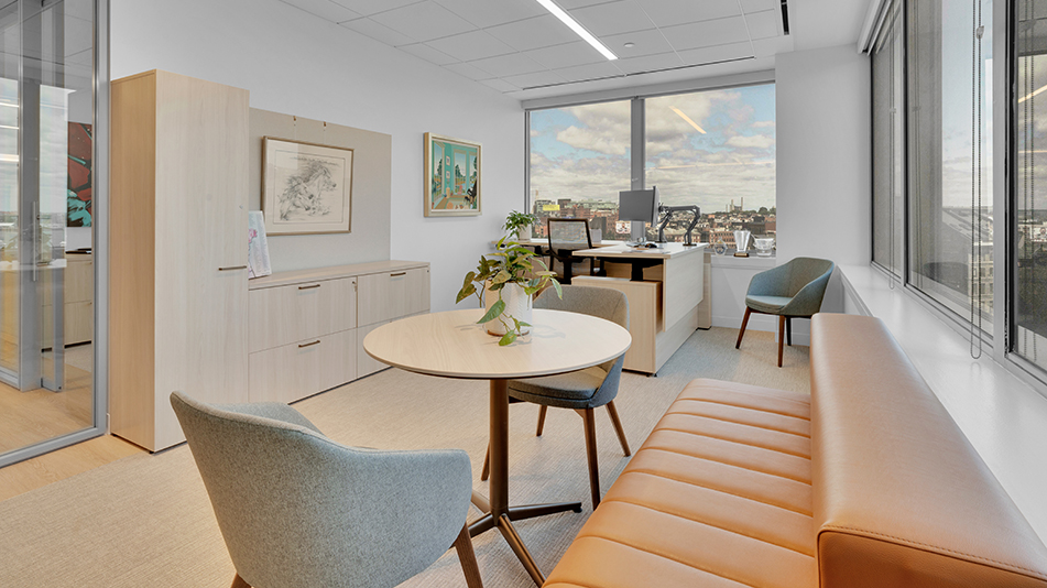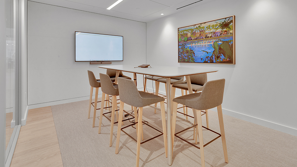 - In addition, the client required a fully customized interior fit-out to reflect the specific needs of employees and visiting members. The space needed to facilitate collaboration, flexibility, and comfort while improving upon the limitations of their previous office.