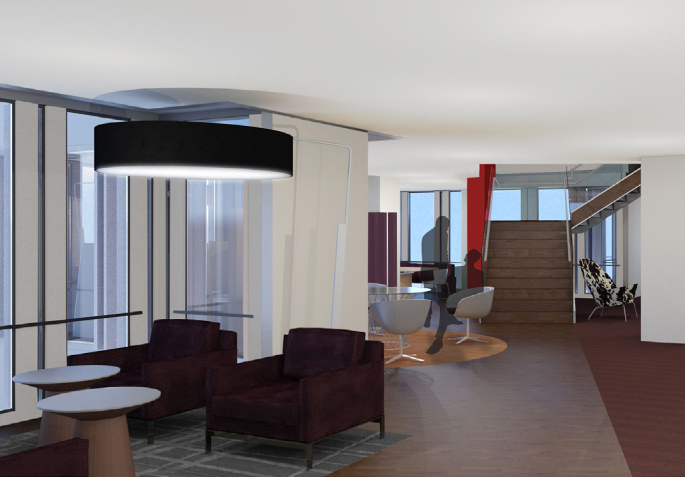 - Centralized reception and meeting space, as well as distributed, smaller meeting space.